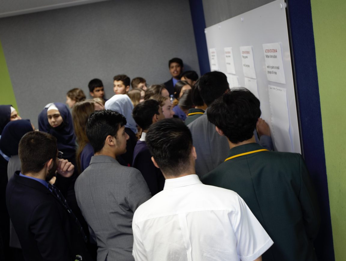 At Gilroy College, the session begins with an Acknowledgement of Country followed by a recitation of the Quran and a Catholic prayer. Students brainstorm different perspectives on faith and journal their discussions on butcher’s paper with markers, paint, or whatever creative tools are at hand. They enjoy lunch together, play sports together, take and share selfies with each other, and stay in touch long after the experience is over. The five-day program, delivered over the course of a semester, includes joint school excursions to places of worship such as St Patrick’s Cathedral in Parramatta and Auburn Gallipoli Mosque.